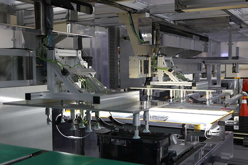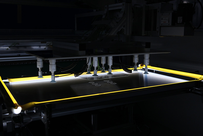 異形或非異形形狀車用蓋板印刷對位上片及下片設備,500mm 蓋板之重複精度可達50μm 適用於網印系統